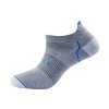 Ponožky mají zpevněnou patu a špičku vláknem nanoglide pro větší odolnost proti mechanickému poškození a delší životnost. Žebrovaný materiál na nártu společně s těsným úpletem a patou ve tvaru Y umocní stabilitu ponožky bez shrnování. Pružný a plochý lem podtrhne dokonalost ponožek a zaručí maximální komfort bez nepříjemných otlaků kůže. Na nártu je umístěný materiál ze síťoviny, díky kterému noha lépe dýchá a rychleji schne. Ergonomicky tvarované na levou a pravou nohu. Barevné kombinace perfektně doplní váš outfit. Buďte spokojeni s každým vaším krokem. Ponožky mají těsný úplet perfektně obepínají a sedí na noze. Zabrání tak shrnování a nepříjemným překladům v botě. Nohy by jsme si měli hýčkat. Jsou naší každodenní oporou a dopravním prostředkem. Vaše sportovní výkony si zpříjemněte pohodlnými ponožkami, které se díky jedinečnému složení přizpůsobí vašim potřebám. V teplých dnech příjemně chladí a v těch chladnějších naopak zahřejí.